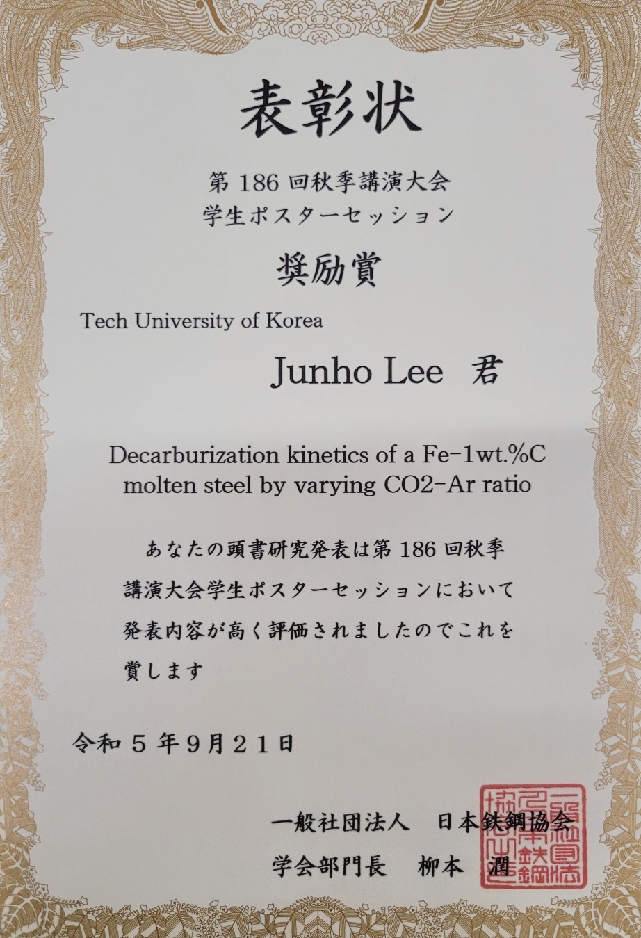 2023년 15회 철강과학포럼 포스터발표 우수상 이준호
